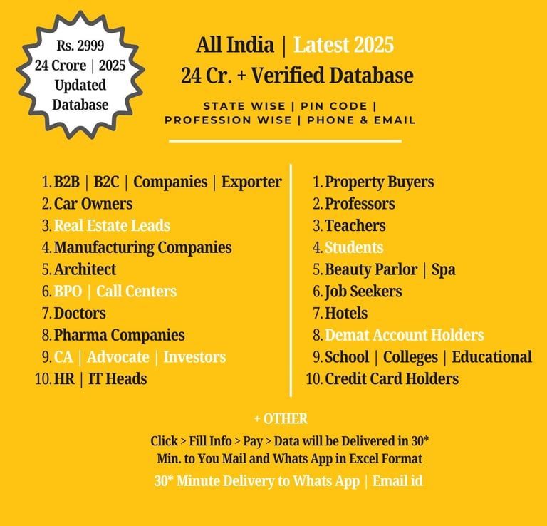 We provide databases for doctors, teachers, real estate agents, and more across India.
